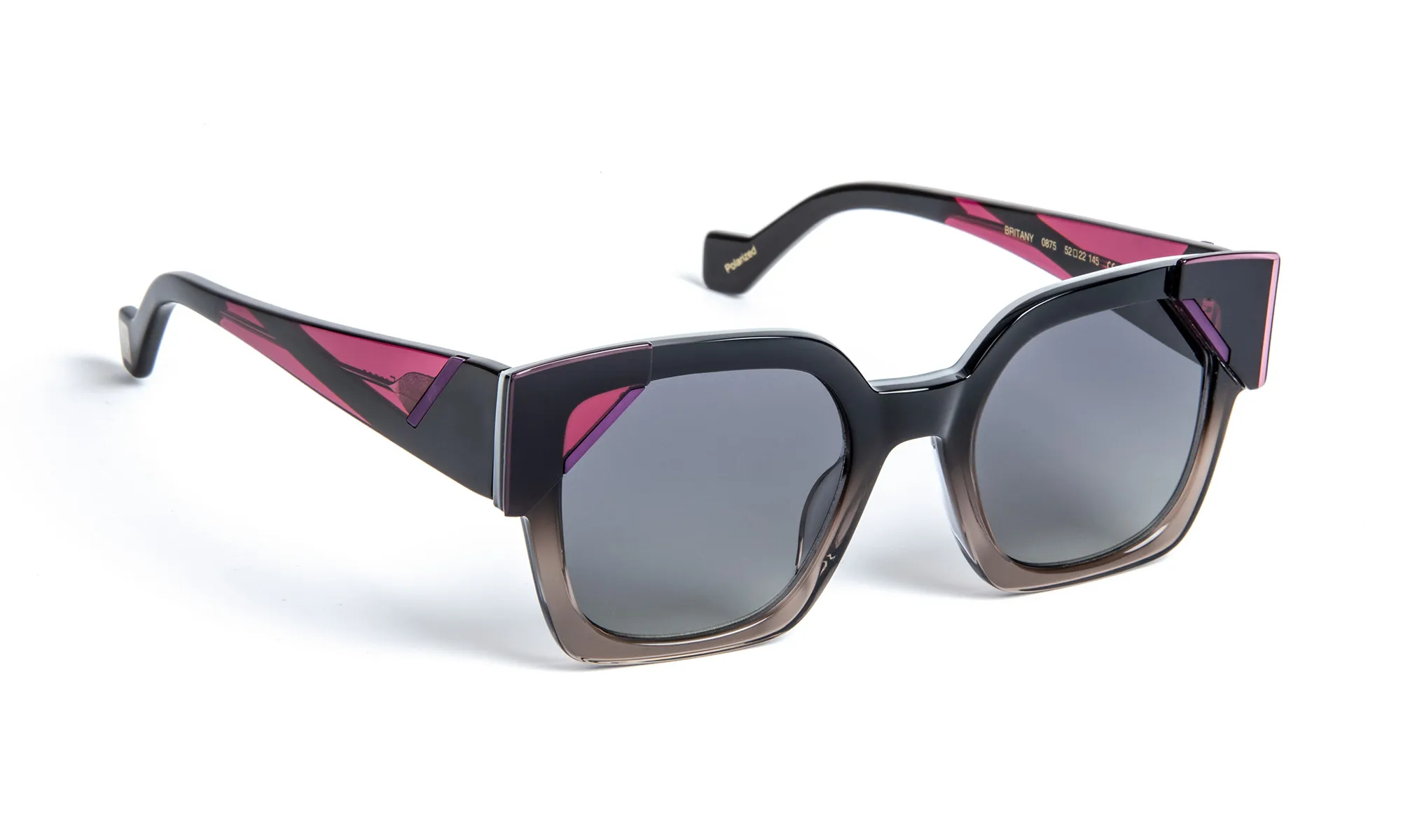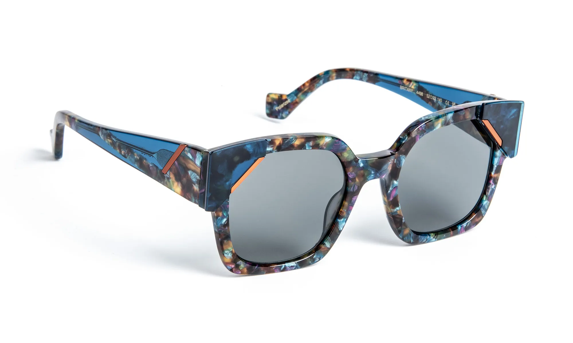 Monture solaire rectangle chic, originale à travers ses coloris graphiques et artistiques, mettant en lumière des compositions d’acétates soigneusement sélectionnées pour renforcer le caractère exclusif et unique de chaque création. Face et branches sont sublimées par une barrette métallique aux reflets satinés, une signature visuelle intemporelle raffinée et sophistiqué.
