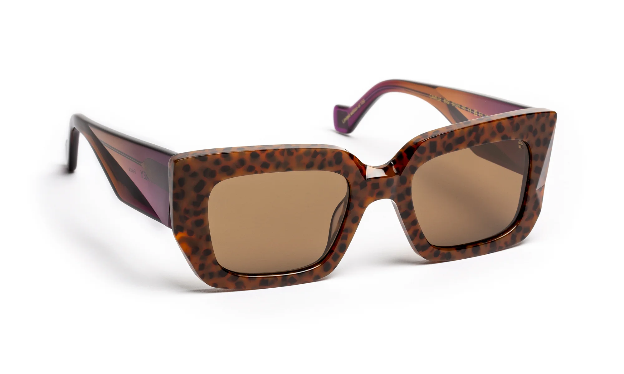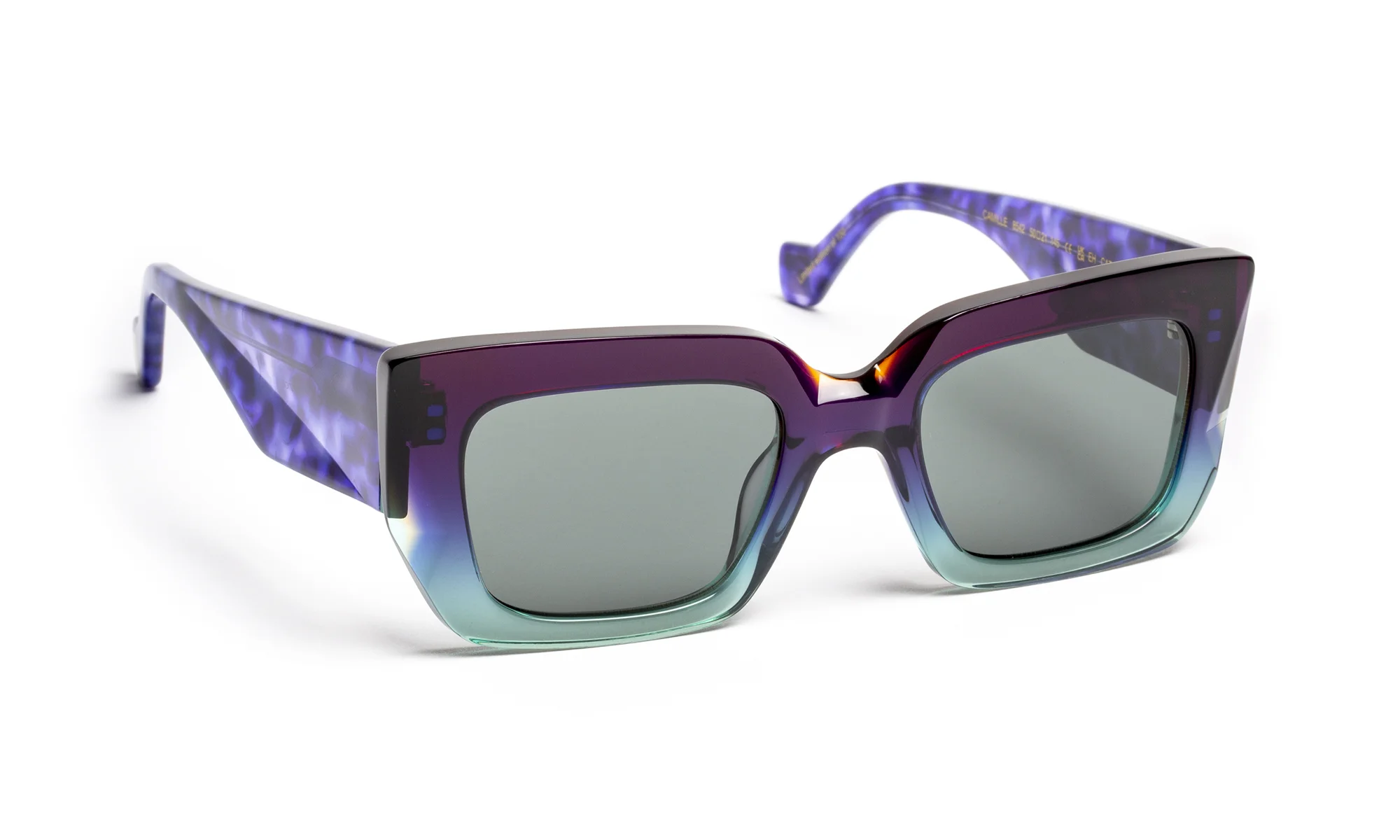 Monture solaire en acétate au design raffiné, sublimée par une finition facettée façonnée à la main. Les branches larges, sculptées en creux, jouent avec la lumière et renforcent son caractère contemporain. Les coloris en dégradé translucide créent des effets de transparence et des reflets changeants sur la face, entre éclat et douceur.