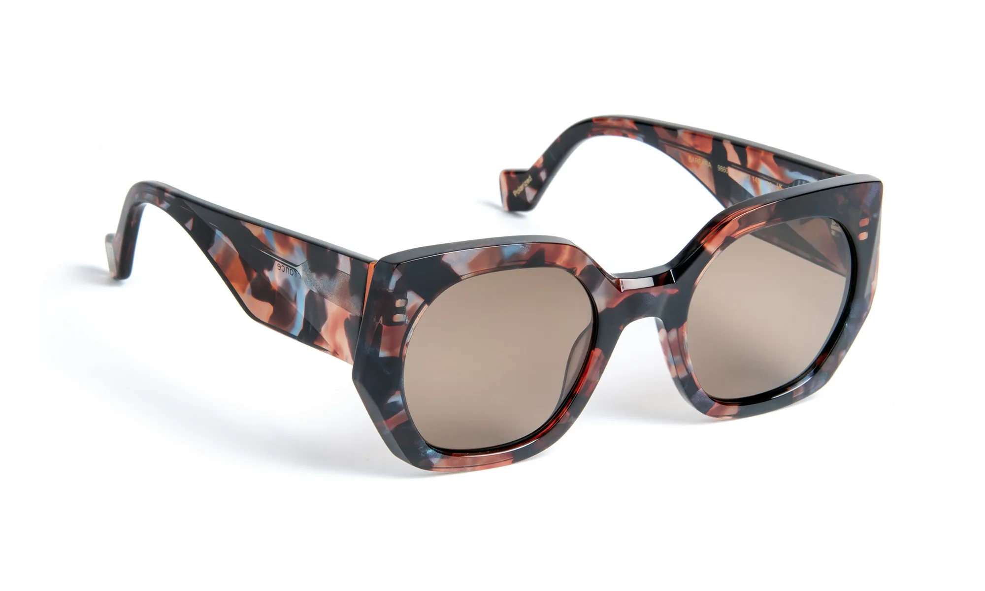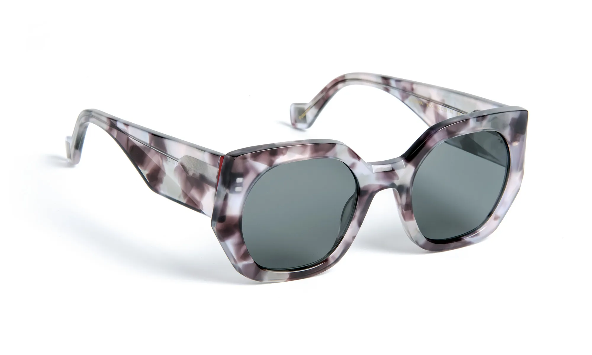 Sunglasses in acetate, with a refined design enhanced by an entirely hand-crafted faceted finish. Its wide, hollow-sculpted temples add subtle reflections and a touch of modernity. The style is distinguished by a palette of iridescent gradations, offering a play of light and changing shades that sparkle on the face of the frame.