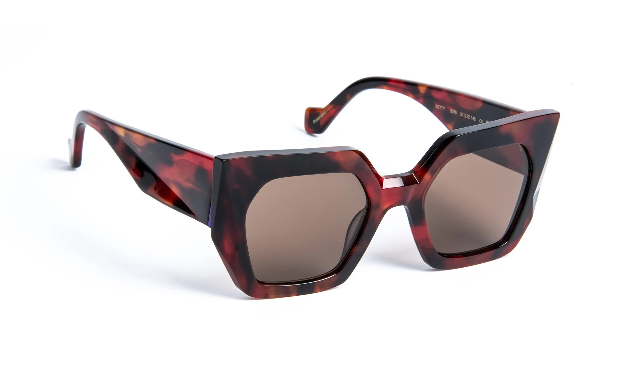 Sunglasses in acetate, with a refined design enhanced by an entirely hand-crafted faceted finish. Its wide, hollow-sculpted temples add subtle reflections and a touch of modernity. The style is distinguished by a palette of iridescent gradations, offering a play of light and changing shades that sparkle on the face of the frame.