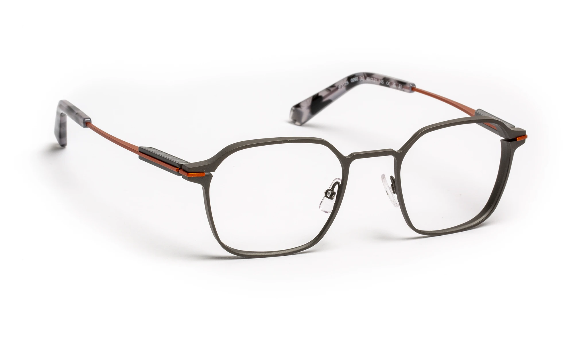 Titanium frame with stainless steel details. The minimalist design is distinguished by a metallic line on the tenon and flex block, a color signature extended to the sleeves. The temples feature a screwless flex hinge block developed by our studio, ensuring flexibility, durability and comfort.