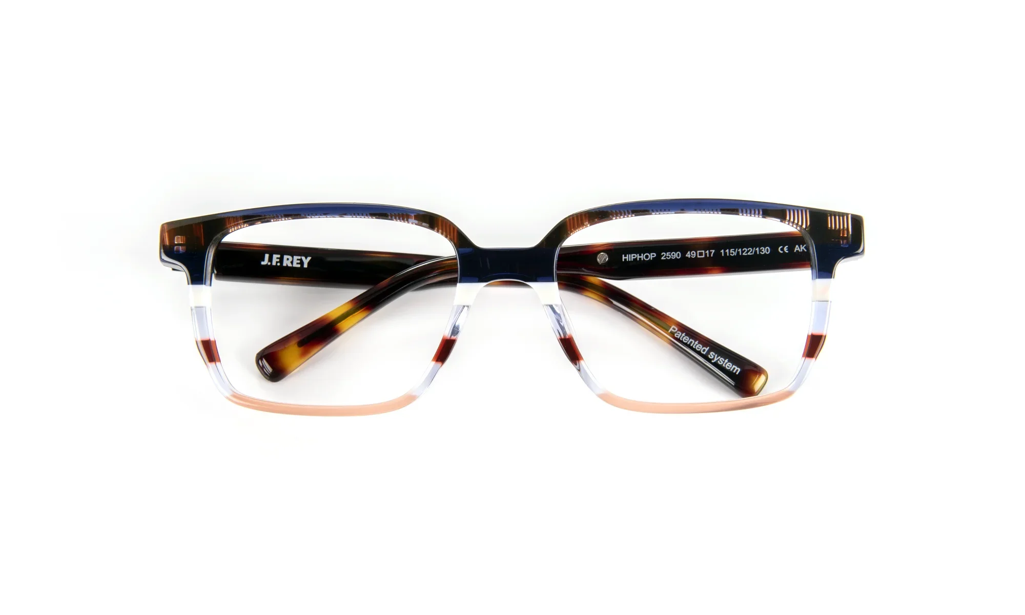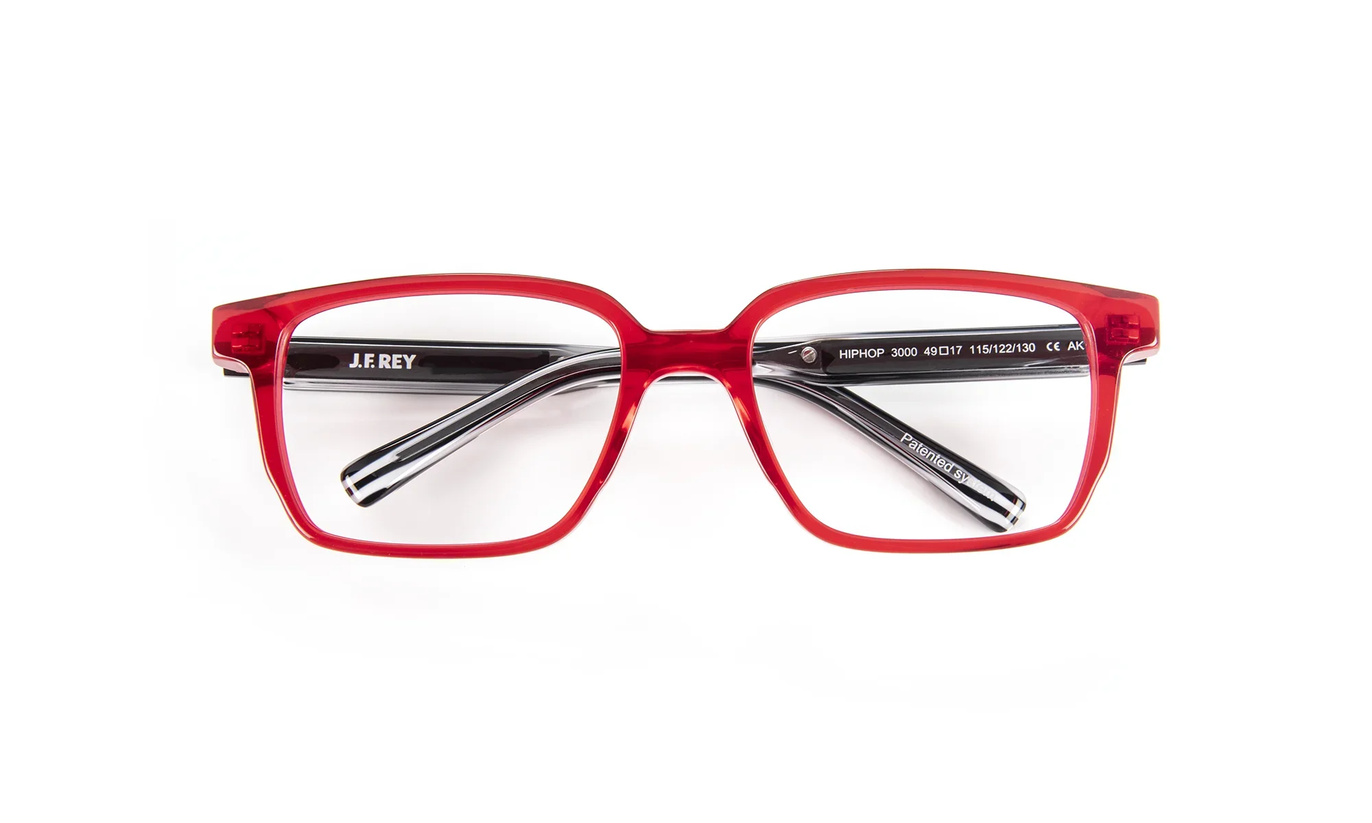 Durable, hypoallergenic acetate frame offering the perfect balance between comfort and skin-friendliness. Its rectangular shape combines elegantly with a range of colors, alternating translucent hues, wide stripes and textured graphic patterns for a modern, sophisticated look.