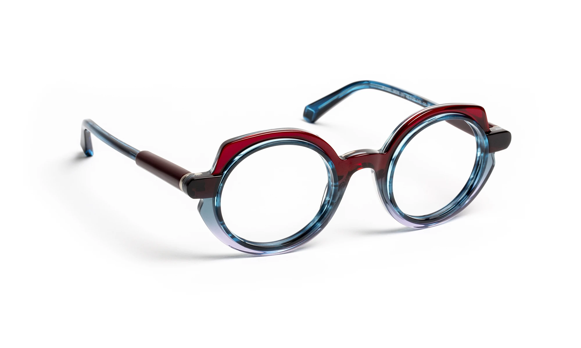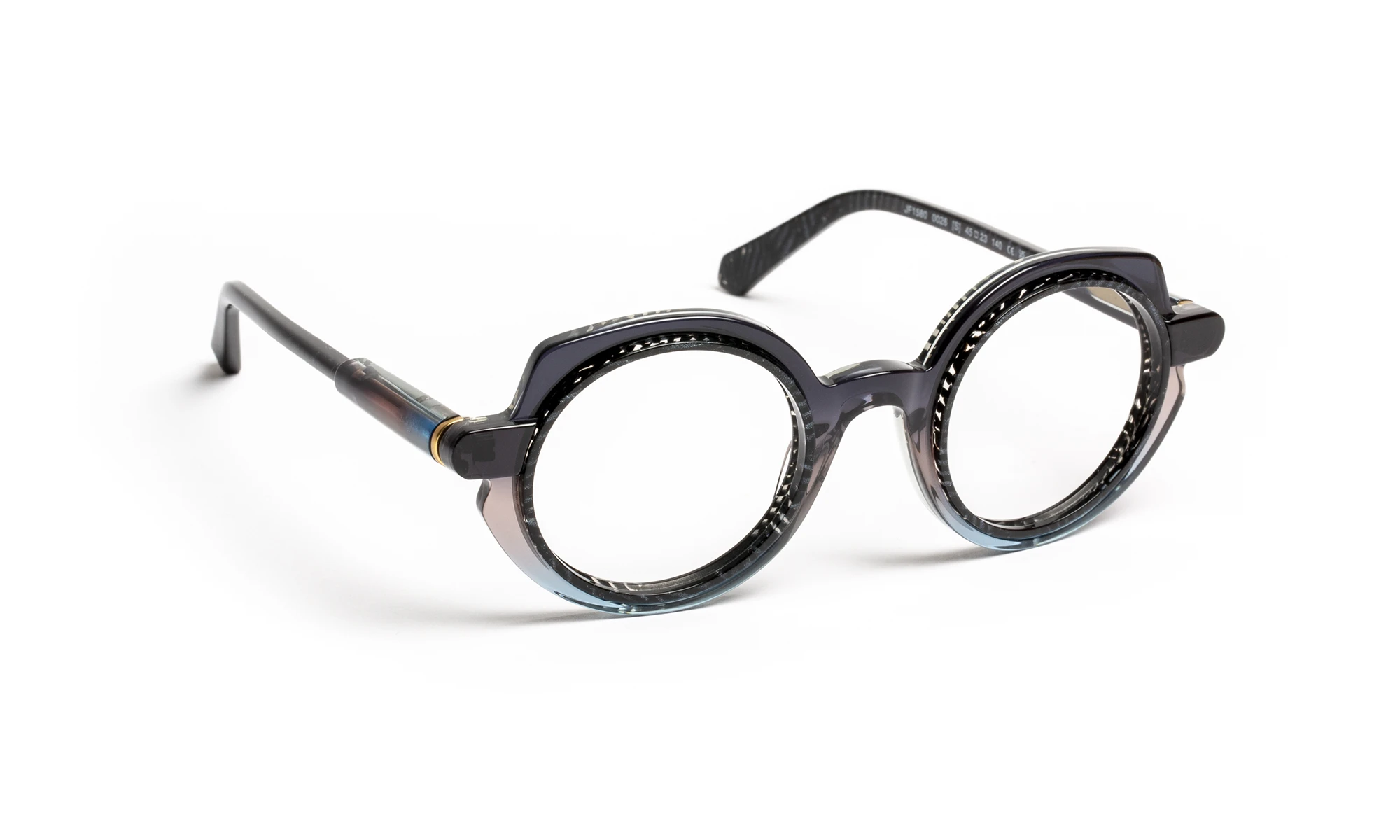 Ce modèle met en valeur la profondeur de l’acétate à travers un jeu de volumes sculptés et de transparences raffinées. Les effets de dégradé, résolument tendance, apportent des variations de couleur subtiles qui réagissent à la lumière. La face aux tenons allongés accentue cette richesse visuelle, tandis que les branches, travaillées avec un effet totem et un manchon diamanté, soulignent l’originalité affirmée de la forme.