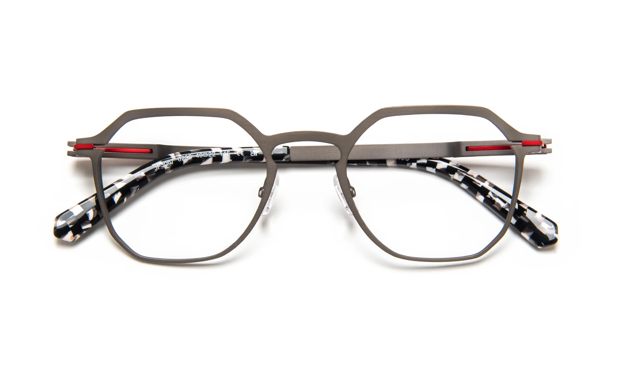 JF3067 est une monture en titane face et branches, manchons en acétate et inserts décoratifs en carbone. Son originalité tient dans le design d’une charnière exclusive flex sans vis. Pensée pour être fonctionnelle et esthétique, sa présence minimaliste est mis en valeur par la couleur, une signature visible face et branches que l’on retrouve déjà sur de nombreux modèles pour homme de notre collection.
