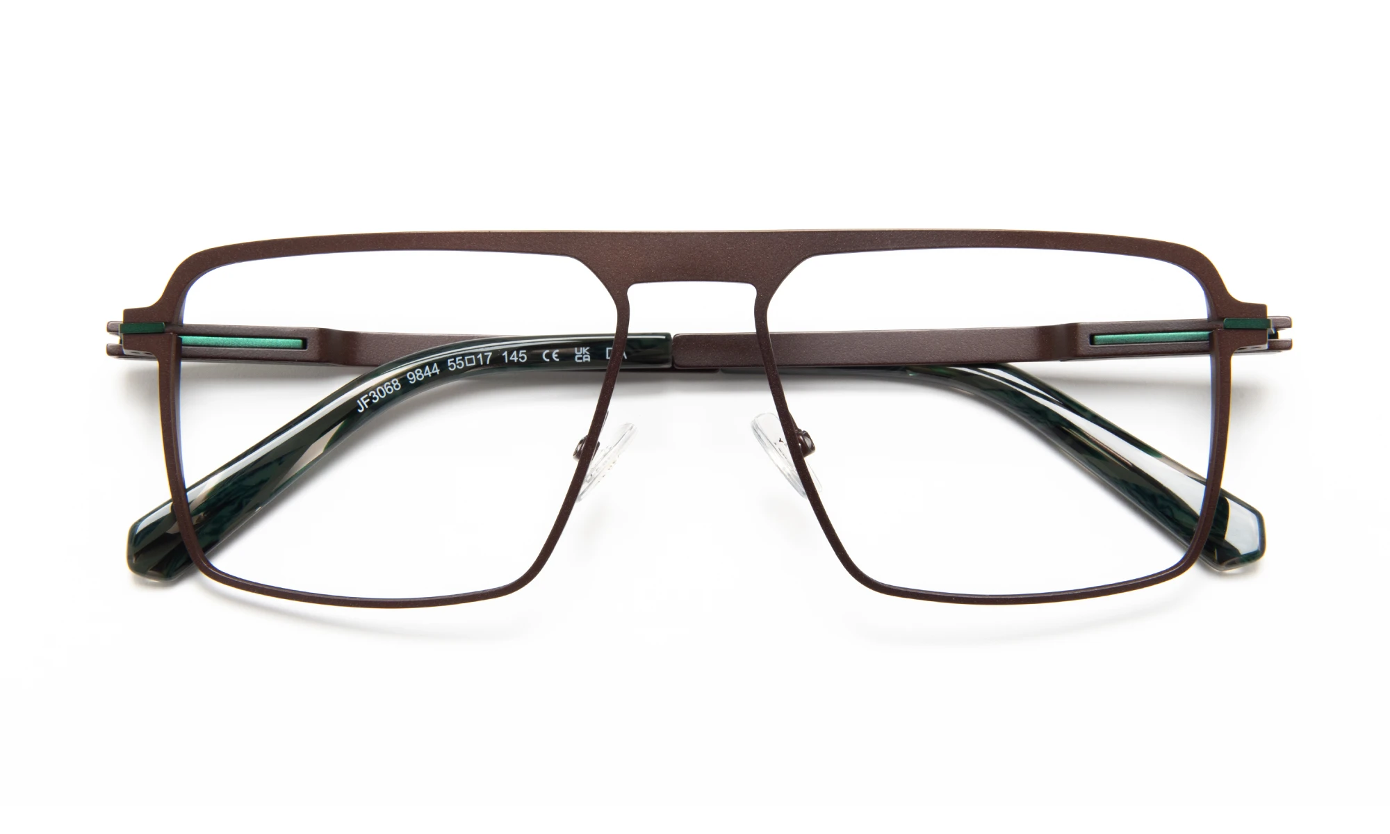 JF3068 est une monture en titane face et branches, manchons en acétate et inserts décoratifs en carbone. Son originalité tient dans le design d’une charnière exclusive flex sans vis. Pensée pour être fonctionnelle et esthétique, sa présence minimaliste est mis en valeur par la couleur, une signature visible face et branches que l’on retrouve déjà sur de nombreux modèles pour homme de notre collection.
