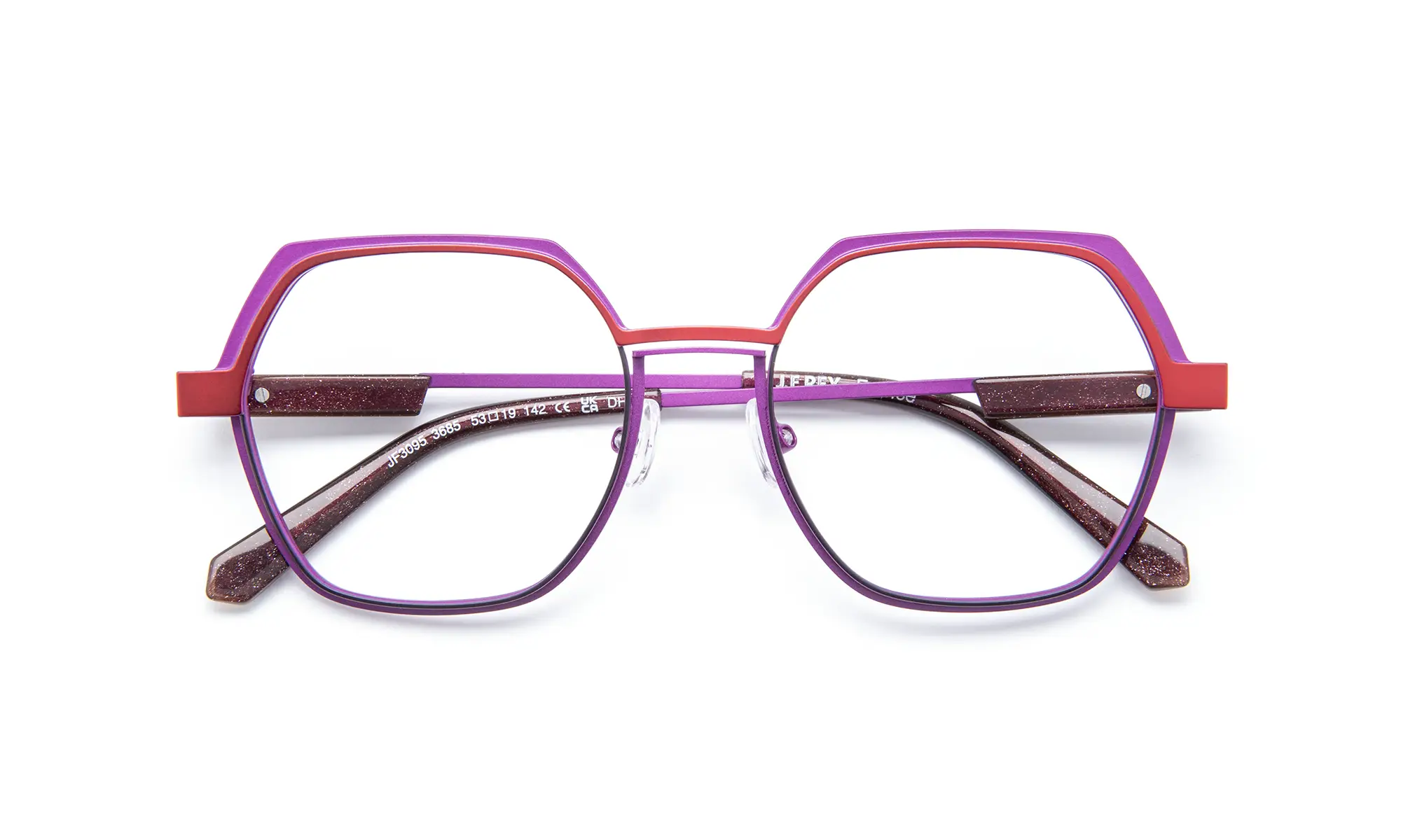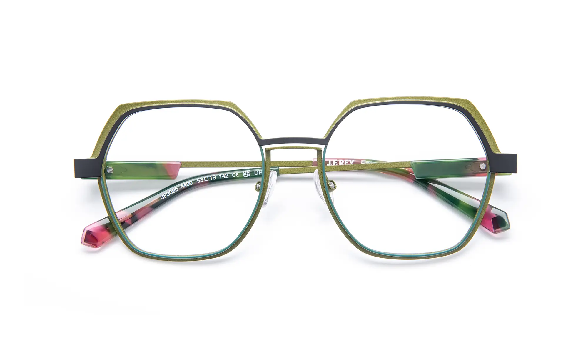 Monture en métal légère et sophistiquée, offrant une version plus ample du modèle JF3094. Son design joue avec des lignes graphiques et des reliefs subtils, mettant en valeur un jeu de couleurs harmonieux. Les branches en métal fin sont agrémentées d’un élément décoratif en acétate, apportant une touche distinctive et élégante. L’association des matières et des teintes coordonnées crée un style moderne et raffiné.
