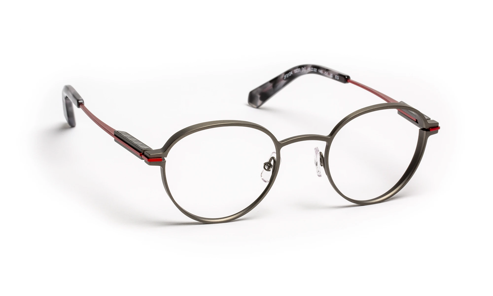 Monture en titane avec détails en acier inoxydable. Le design minimaliste se distingue par une ligne métallique sur tenon et bloc flex, signature couleur prolongée jusqu’aux manchons. Les branches intègrent un bloc charnière flex sans vis, développé par notre studio, assurant souplesse, durabilité et confort.